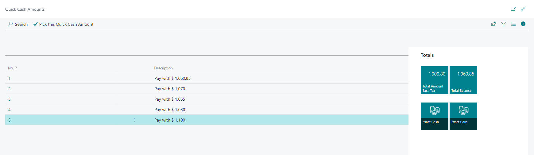 A list of quick cash payment options will be displayed based on the denominations you defined.